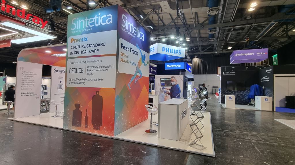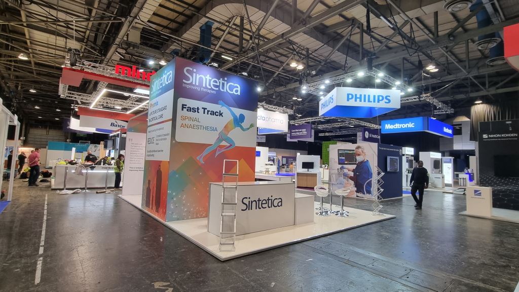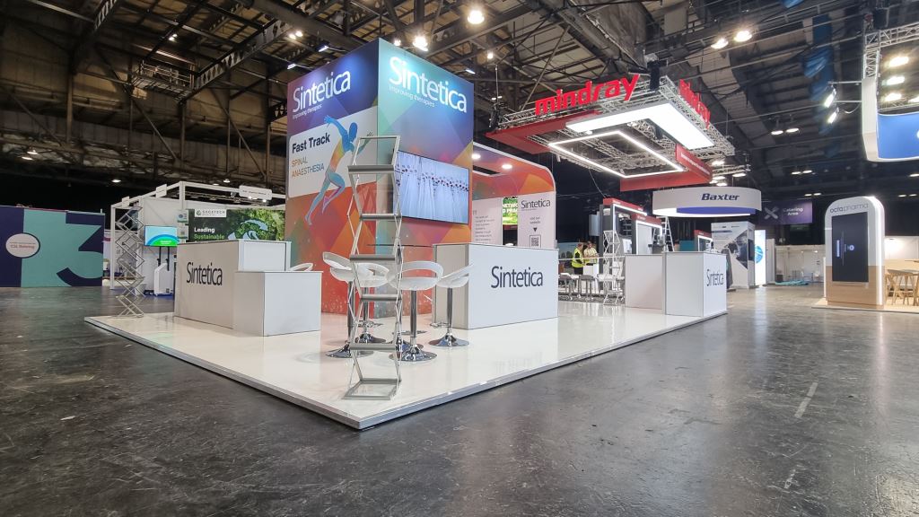 Working in collaboration with a renowned global agency and general contractor EF Group we worked in partnership to bring their vision to life for the exhibitor. This 8m x 6m island plot needed some height for branding. There was a thought for using a hanging banner but budgets did not allow. So we built the stand to 4m height keeping it within the complex guides and added a couple of feature arches. Coffee counter with a couple of other counters, one being an L shaped corner welcome counter. Add in a 75″ screen, furniture and raised platform to run the power from the central walk in storage unit. Job was a good one. Customer and exhibitor very happy.